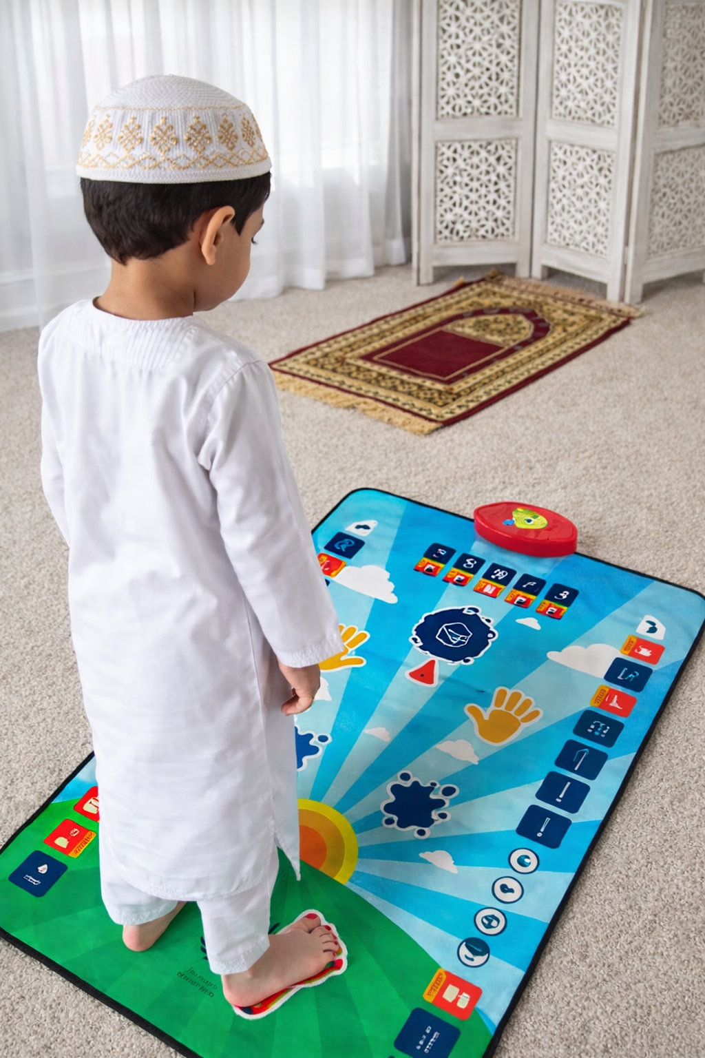 le tapis petitnoor est un tapis nouvelle génération qui alia l'esthétisme et une interaction pour guider votre enfants dans l'apprentissage de la prière