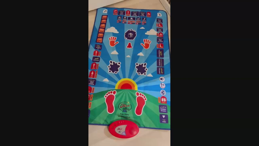 Grâces a ce tapis ludique et éducatif, votre enfants découvre pas à pas les sourates essentielles et les différentes positions de la prière de façon interactive. Chaque étape est guidée pour l'aide à apprendre correctement tout en s'amusant.